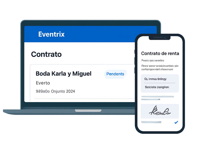 La próxima vez que un cliente te diga “mándame el contrato y lo reviso”, podrás enviarlo desde Eventrix y recibir la firma sin perseguirlo por días.